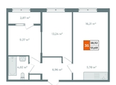 2 изолированные комнаты правильной формы, 9,37м2 с выходом на лоджию, спальная 13,24м2