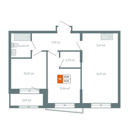 Продаётся 3-комнатная квартира 62,37 м2 напрямую от застройщика в жилом комплексе «Автор».