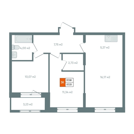 Продаётся 3-комнатная квартира 62,37 м2 напрямую от застройщика в жилом комплексе «Автор».