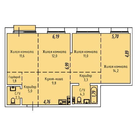 Просторная трёхкомнатная квартира для любителей послеобеденного солнца. Жилые комнаты правильной формы с возможностью установить вместительные шкафы-купе или выгородить гардеробную. Кухня располагается в нише площадью 10 кв.м. Два раздельных санузла находятся в противоположных углах квартиры.О жилом комплексе:«Стрижи Сити» — не просто популярное место среди горожан, это настоящий центр, притягивающий людей для отдыха и встреч. Район этого жилого комплекса давно обжит и уже превратился в уютное место, обладающее всем необходимым для комфортной жизни. Здесь вы найдёте разнообразие возможностей для шопинга, образования, медицинского обслуживания, а также для развлечений и занятий спортом. Кроме того, в планы строительства уже включён детский сад, который расположится внутри жилого комплекса. «Стрижи Сити» находится рядом с главной транспортной артерией города — ул. Советской, что даёт возможность лёгкого и быстрого перемещения как к центру города, так и к аэропорту. Каждая планировка ЖК «Стрижи Сити» продумана с учётом различных сценариев использования. В проекте представлены планировочные решения для создания как классических квартир с отдельными комнатами, так и европланировки, в которых гостиная объединена с кухней. Есть квартиры с большими гардеробными, несколькими санузлами и даже большими террасами — каждая из них готова соответствовать самым высоким требованиям будущих владельцев. Панорамные окна и угловое остекление в комнатах позволяют получить максимум бесценного естественного света в течение дня, что создаёт ощущение тепла и уюта в любое время года. Благоустройство территории ориентировано на создание дворов, где соседи становятся друзьями. Все жители без исключения смогут найти себе занятие по душе: почитать книгу в тени деревьев, заняться спортом, собраться веселой компанией или поиграть с детьми на детской площадке. Наши комплексы состоят не только из жилых помещений. Все необходимые сферы бизнеса рядом с вами, буквально в двух шагах: магазины, кофейни, сервисные услуги — мы стараемся подбирать собственников коммерческих помещений так, чтобы «стрижители» могли получить все необходимые услуги.