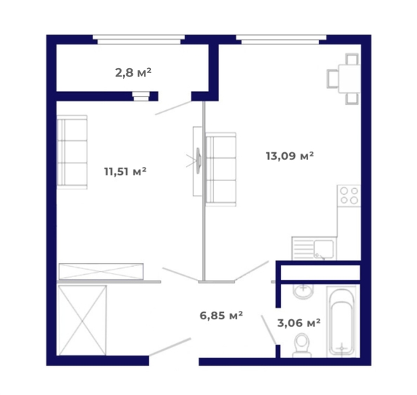 Широкие комнаты, функциональные прихожие с местами для хранения
