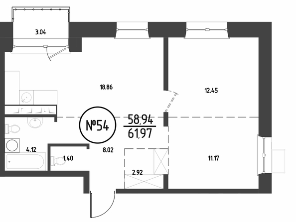 Общая площадь квартиры — 61.98 кв.м. Компания-застройщик — ГРАНДСТРОЙ.