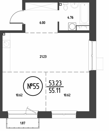 Общая площадь квартиры — 55.1 кв.м. Компания-застройщик — ГРАНДСТРОЙ.