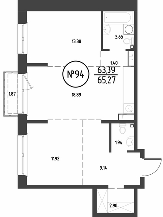 Общая площадь квартиры — 65.27 кв.м. Компания-застройщик — ГРАНДСТРОЙ.