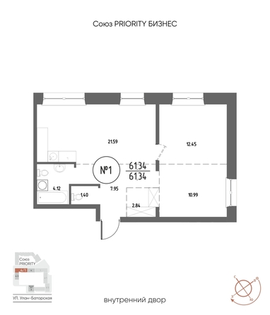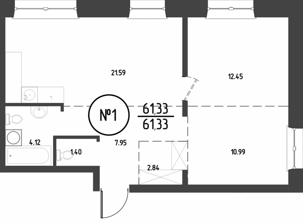 Общая площадь квартиры — 61.34 кв.м. Компания-застройщик — ГРАНДСТРОЙ.