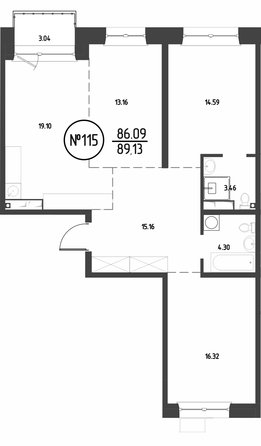Общая площадь квартиры — 89.13 кв.м. Компания-застройщик — ГРАНДСТРОЙ.