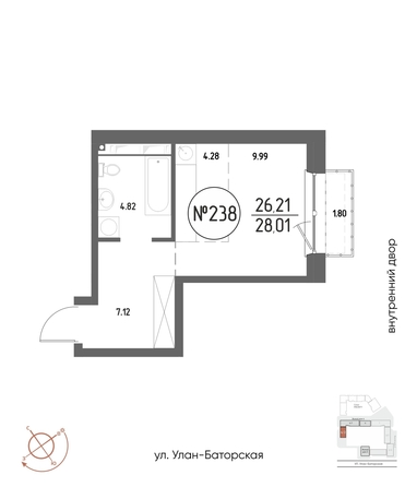 Общая площадь квартиры — 28.01 кв.м. Тип дома — монолит-блок. Компания-застройщик — ГРАНДСТРОЙ.