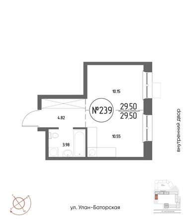 Общая площадь квартиры — 29.5 кв.м. Тип дома — монолит-блок. Компания-застройщик — ГРАНДСТРОЙ.
