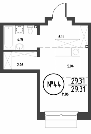 Общая площадь квартиры — 29.32 кв.м. Компания-застройщик — ГРАНДСТРОЙ.