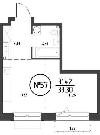 Общая площадь квартиры — 33.29 кв.м. Компания-застройщик — ГРАНДСТРОЙ.