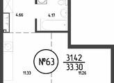 Общая площадь квартиры — 33.29 кв.м. Компания-застройщик — ГРАНДСТРОЙ.