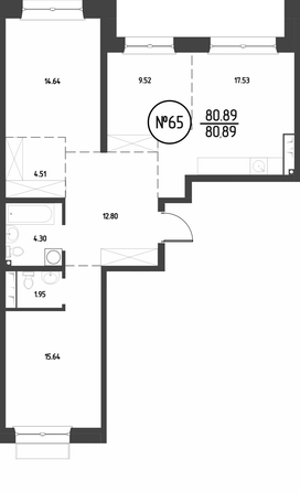 Общая площадь квартиры — 80.89 кв.м. Компания-застройщик — ГРАНДСТРОЙ.