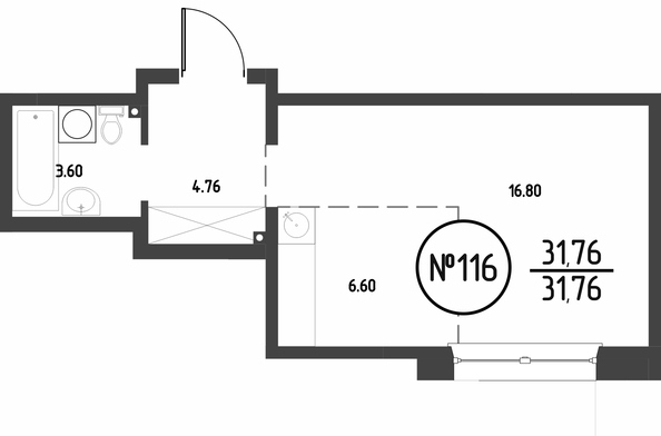Общая площадь квартиры — 31.76 кв.м. Компания-застройщик — ГРАНДСТРОЙ.