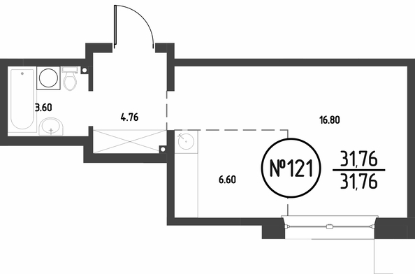 Общая площадь квартиры — 31.76 кв.м. Компания-застройщик — ГРАНДСТРОЙ.