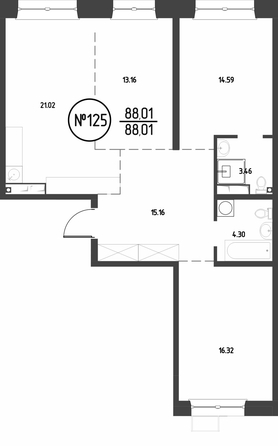 Общая площадь квартиры — 88.01 кв.м. Компания-застройщик — ГРАНДСТРОЙ.