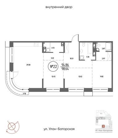 Общая площадь квартиры — 98.64 кв.м. Компания-застройщик — ГРАНДСТРОЙ.