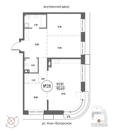 Общая площадь квартиры — 95.69 кв.м. Компания-застройщик — ГРАНДСТРОЙ.