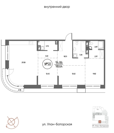 Общая площадь квартиры — 98.64 кв.м. Компания-застройщик — ГРАНДСТРОЙ.