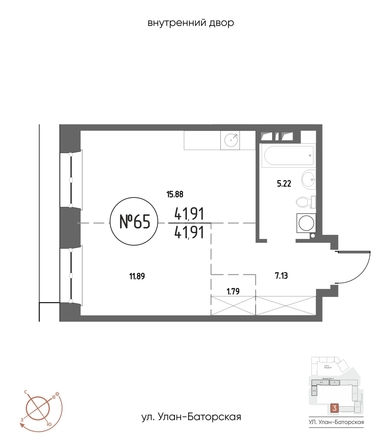 Общая площадь квартиры — 41.91 кв.м. Компания-застройщик — ГРАНДСТРОЙ.