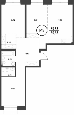 Общая площадь квартиры — 89.63 кв.м. Компания-застройщик — ГРАНДСТРОЙ.