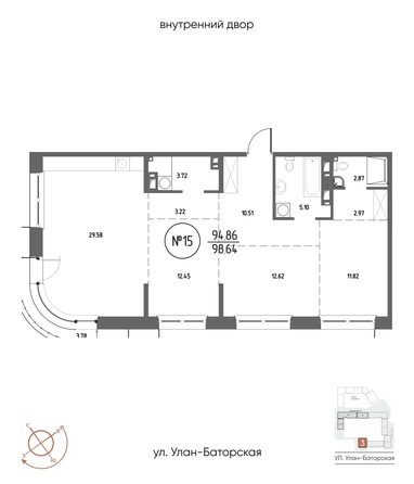 Общая площадь квартиры — 98.64 кв.м. Компания-застройщик — ГРАНДСТРОЙ.
