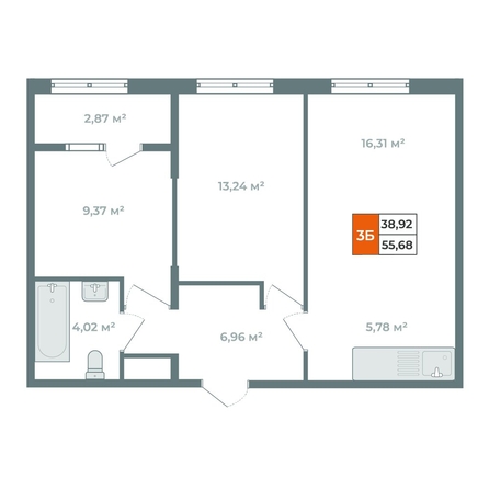 Продаётся 3-комнатная квартира 58,55 м2 напрямую от застройщика в жилом комплексе «Автор».