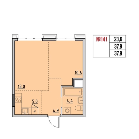 Двухкомнатная планировка. Рядом с холлом расположена кухня-ниша. Две отдельные комнаты можно разделить на спальню родителей и детскую или семейную комнату и гостиную. Пространство пластично и позволяет создать именно то, что вам требуется. Окна выходят на юг.