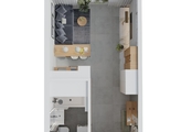 Ставшее классическим решение студии для первого жилья или в качестве инвестиционного продукта. Квадратная комната, кухня ниша и просторный санузел совмещенного формата.