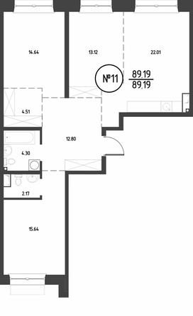 Общая площадь квартиры — 89.19 кв.м. Компания-застройщик — ГРАНДСТРОЙ.