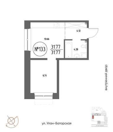 Общая площадь квартиры — 31.77 кв.м. Компания-застройщик — ГРАНДСТРОЙ.
