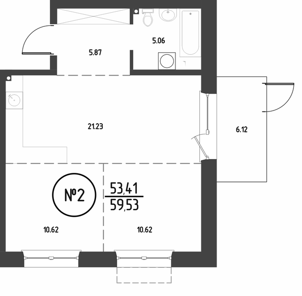 Общая площадь квартиры — 59.52 кв.м. Компания-застройщик — ГРАНДСТРОЙ.