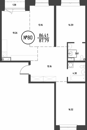 Общая площадь квартиры — 87.78 кв.м. Компания-застройщик — ГРАНДСТРОЙ.