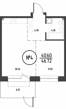 Общая площадь квартиры — 46.72 кв.м. Компания-застройщик — ГРАНДСТРОЙ.