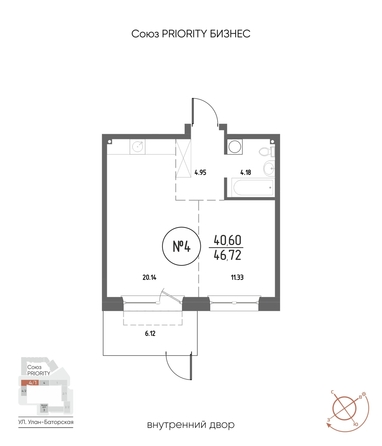 Продается 1-комнатная квартира в новостройке СОЮЗ ПРИОРИТИ МАХ, д. 4 по адресу Иркутская область, Иркутск, Свердловский от застройщика.