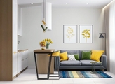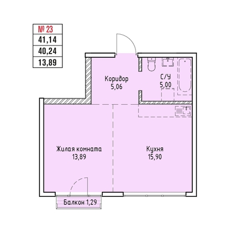 Классическая однокомнатная квартира с двумя окнами, одно из которых — на отдельной кухне. Имеет открытую планировку без перегородок. Расположение окон на юго-восток. В некоторых квартирах (на 4, 6, 8, 10, 12, 14 и 16 этажах) предусмотрен выход на небольшой французский балкон. В холле предусмотрено место для установки гардеробного шкафа-купе. Санузел совмещён. Идеальное решение для первого жилья или в качестве инвестиций.