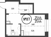 Общая площадь квартиры — 25.45 кв.м. Компания-застройщик — ГРАНДСТРОЙ.