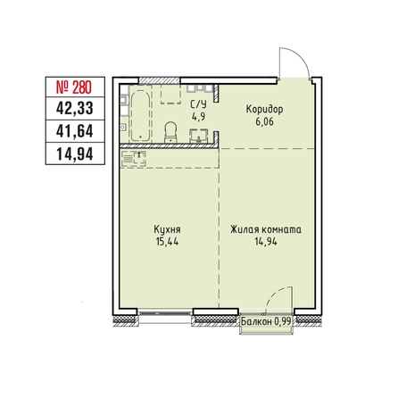 Классическая однокомнатная квартира с двумя окнами. Имеет открытую планировку без перегородок. Расположение окон на юго-восток. Санузел совмещён. В части чётных этажей (с 4-го по 16-й) в планировке присутствует небольшой французский балкон. Идеальное решение для первого жилья или в качестве инвестиций.