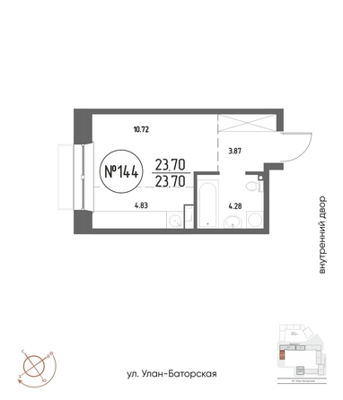 Общая площадь квартиры — 23.7 кв.м. Компания-застройщик — ГРАНДСТРОЙ.