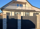 4 комнаты + кухня-гостиная с выходом на заднюю террасу, два санузла - оснащенные всей необходимой сантехникой, включая душевую кабину! Во всех спальнях точечные светильники и люстры. Большой гараж, с автоматическими воротами, ровный участок 15 соток., на участке есть деревья. Свет официальный, развитая инфраструктура.