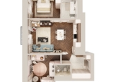 Торцевая квартира с восточным расположением. Предусмотрено два санузла, вместительный холл, кухня европейского формата в нише. Одна из комнат имеет угловое окно, другая — мастер-спальня с отдельным санузлом.