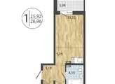 Общая площадь квартиры — 28.96 кв.м. Тип дома — монолит-кирпич. Компания-застройщик — ГК Профит.
