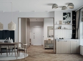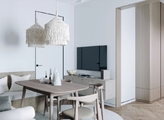 Торцевая двухкомнатная квартира с окнами на три стороны: юго-восток, северо-восток и северо-запад. Большой 10-метровый холл прекрасно вместит несколько шкафов-купе для комфортной организации сезонных вещей. Жилые комнаты расположены «распашонкой», в центре квартиры — кухня и гостиная. Два санузла можно разделить на гостевой и хозяйский или оставить одним большим помещением. В этой планировке на 15 и 16 этажах в южной спальне есть выход на террасу с видом во двор и на улицу Советская.
