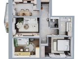 Классическая трёхкомнатная квартира с кухней-гостиной и вместительным двойным санузлом, размещённым углом. Именно такое расположение позволит сделать в ближайшей комнате мастер-спальню для семейной пары: современное и комфортабельное решение. В гостиной на пятом, седьмом и девятом этажах есть выход на открытый балкон, чтобы любоваться чудесными видами. Квартира имеет угловое расположение и выгодно располагается в самом светлом месте дома: окна выходят на восток и юг.