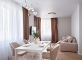 ШОУРУМ / ДЕМОНСТРАЦИОННАЯ КВАРТИРАВеликолепное классическое решение для большой семьи. Здесь вы найдете и мастер-спальню для родителей с отдельным санузлом, и просторные детские комнаты, и уютную светлую гостиную. Кухню можно как выгородить в виде буфета, так и соединить с гостиной в общее пространство для приёма гостей и семейных обедов. Туалетная комната большой площади предполагает комбинаторное решение на хозяйский и гостевой санузел.ШОУРУМ – демонстрационная квартира с готовым ремонтом и обстановкой, где можно «примерить» жилье на себя. В шоуруме проще понять, достаточно ли будет места и комфорта для вашего жизненного сценария. Запишитесь на просмотр по тел. (3952) 22-77-77 и лично оцените качество наших проектов.