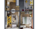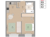 Двухкомнатная квартира открытой планировки расположена напротив лифтов, поэтому прекрасно подойдет для семьи с маленьким ребёнком или человека с ограниченными возможностями. Расположение окон на Сергиев Посад. Санузел совмещён. Кухня выделена в нишу. Комнаты правильной прямоугольной формы.