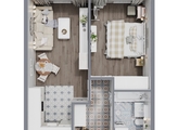 Евродвушка с кухней-нишей и двумя прямоугольными жилыми комнатами. Отличное решение для одного взрослого человека или семьи из двух человек. Вид во двор (южные окна).