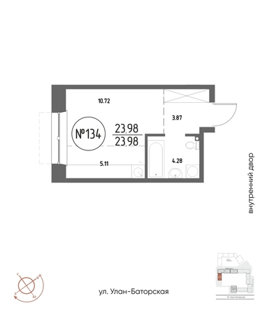 Общая площадь квартиры — 23.98 кв.м. Компания-застройщик — ГРАНДСТРОЙ.