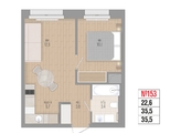 Двухкомнатная планировка. Рядом с холлом расположена кухня-ниша. Две отдельные комнаты можно разделить на спальню родителей и детскую или семейную комнату и гостиную. Пространство пластично и позволяет создать именно то, что вам требуется. Окна выходят на юг.