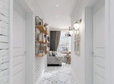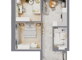 Двухкомнатная квартира классической планировки с отдельной кухней-гостиной. На чётных этажах (с 4-го по 14-й) из кухни предусмотрен выход на французский балкон. Расположение квартиры — угловое, с выходом на солнечную сторону. Жилые комнаты имеют правильную квадратную форму. Санузел совмещённый.